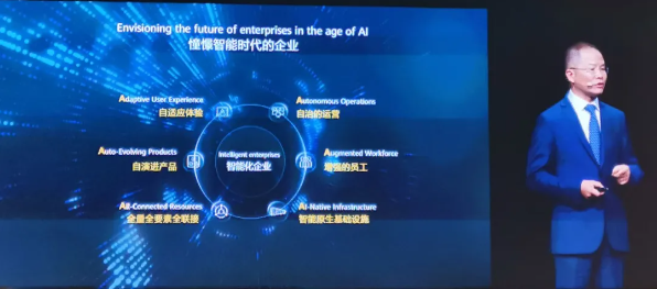 在这次大会上,华为分享了对智能化的观察、思考、战略和实践,并从多个方面解读了全面智能化(All Intelligence)战略。华为副董事长、轮值董事长徐直军在主题演讲中提到,人工智能已成为对行业影响最大的技术,未来的智能化企业将具备六个A的特征:Adaptive User Experience(自适应体验)、Auto-evolving Products(自演进产品)、Autonomous Operation(自治的运营)、Augmented Workforce(增强的员工)、All-Connected Resources(全量全要素全联接)、以及AI-Native Infrastructure(智能原生基础设施)。