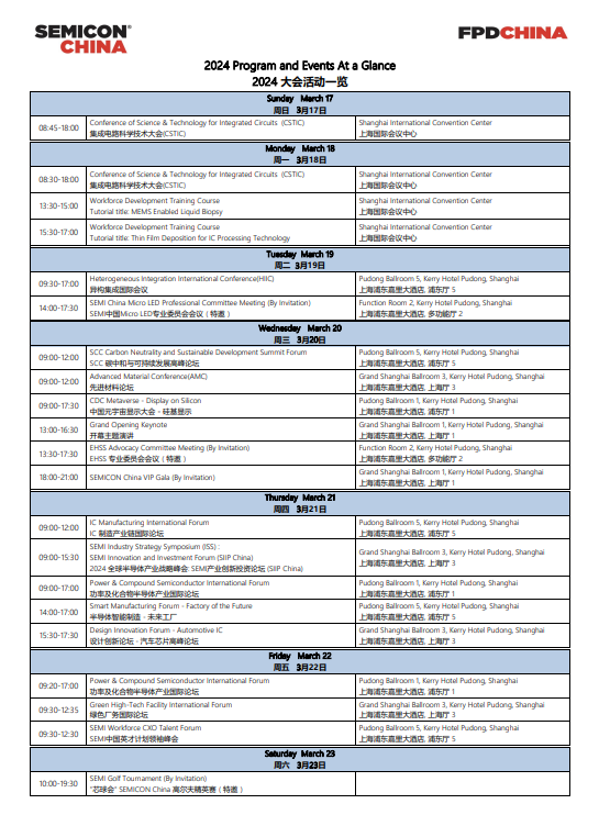 每年3月在上海举办的 SEMICON China 国际半导体展览会,囊括了全球半导体制造领域主要的设备及材料厂商,汇聚了全球半导体及平板显示行业众多领先企业及重要决策者,帮助半导体人了解产业新形势,是半导体行业交流合作的旗舰展览。