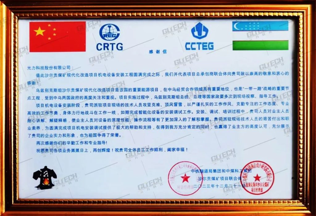 股份有限公司积极参与乌兹别克斯坦沙尔贡煤矿现代化改造项目,以专业、热情、主动、高效的行动赢得了项目总承包商联合体的认可。