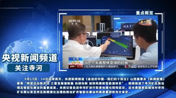 近期(9月中旬),央视新闻频道《奋进的中国——我们的十四五》山篇章及《新闻联播》“转型迈出新步伐 三晋发展谱新篇 向绿向新 加快构建新型能源体系”专题中,连续报道了寺河矿在瓦斯治理与智能化建设方面的显著成效。央视记者深入一线,实地拍摄并采访,展现了寺河矿在瓦斯精细化治理与技术创新上的突出成果,体现了国家级媒体对能源企业转型升级的高度关注。寺河矿瓦斯治理“黑科技”的背后,是NG大舞台 的硬核支撑。