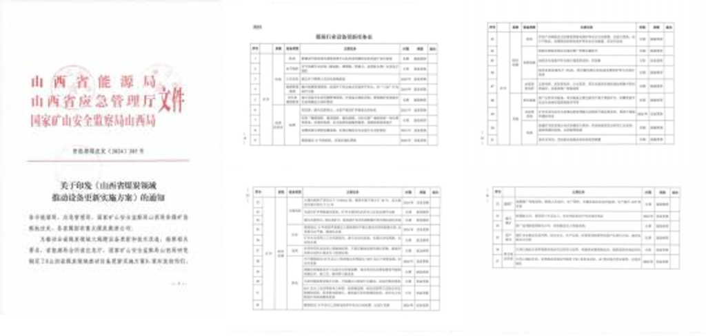 日前 , 山西省能源局会同省应急厅、 国家矿山安全监察局山西局研究制定了《山 西省煤炭领域推动设备更新实施方案》 (以下简称《方案》 ) , 提出依法依规淘汰 一批落后设备、 因地制宜更新一批老旧设备、 适度超前推广一批先进设备 , 全方位 推动煤矿及选煤厂设备向高端、 智能、 绿色、 安全方向更新改造。