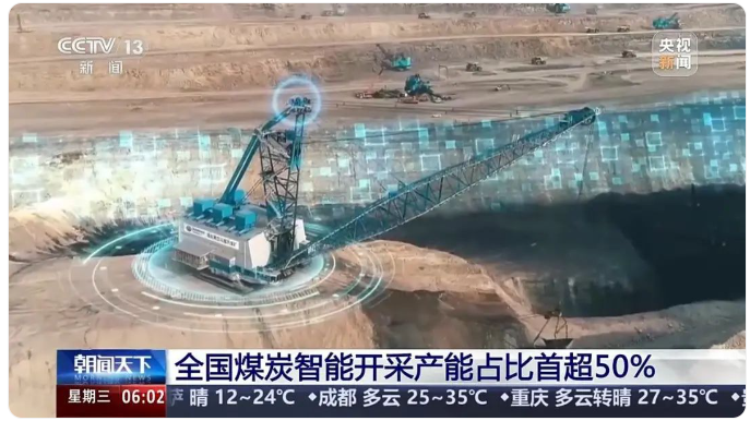 中煤协会数据显示:全国已建成智能煤矿907处、智能工作面1806个,智能开采产能占比首超50%,替代1.6万余个高危岗位。